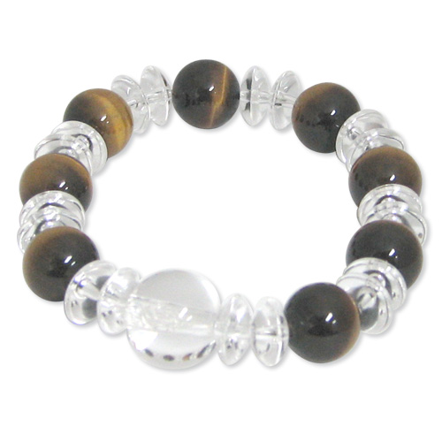 ブレスレット 本水晶(クリスタル) 干支 十二支 梵字入 | 虎眼石(タイガーアイ)(男性用)