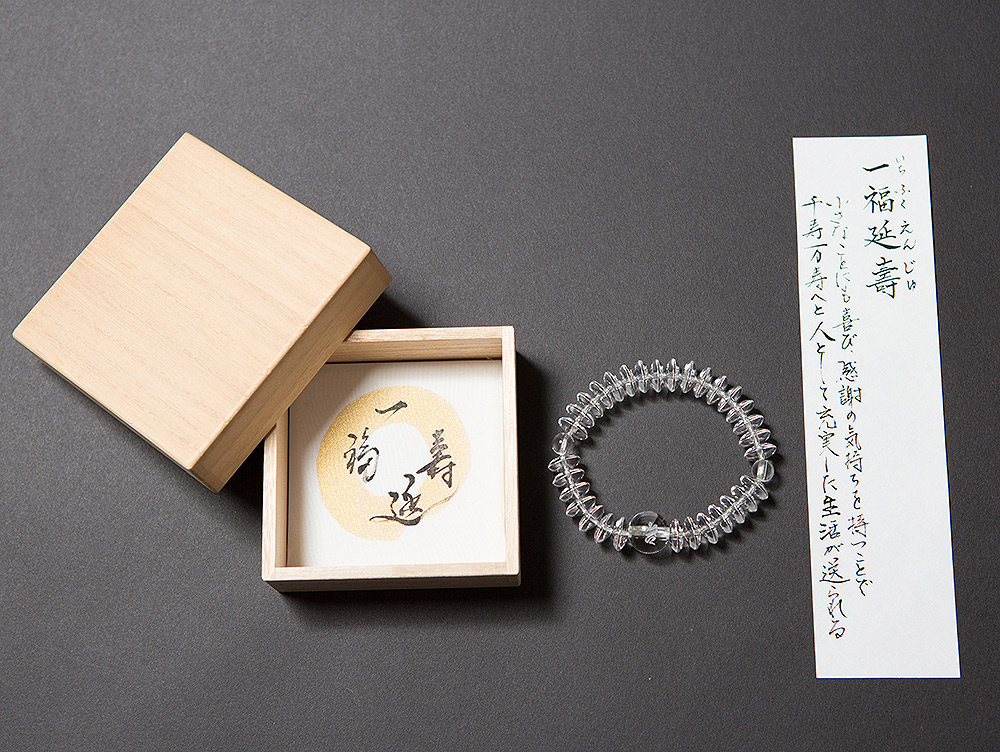 セット内容:ブレスレット + 一福延寿 短冊 + 高級木箱 ずっとお使いいただけるように、高級木箱が付属致します。自分用にはもちろんのこと、ギフトとしても最適です。