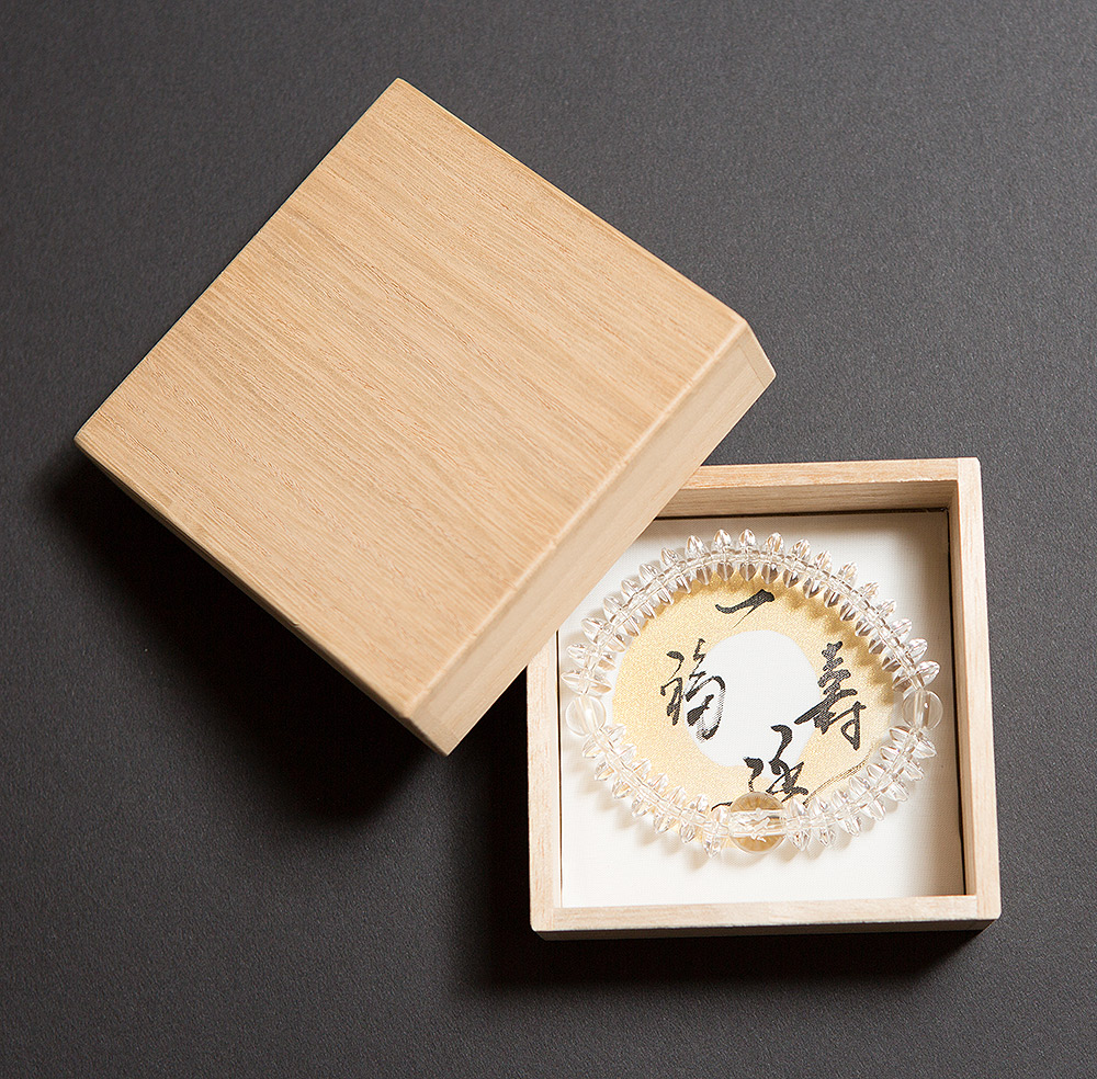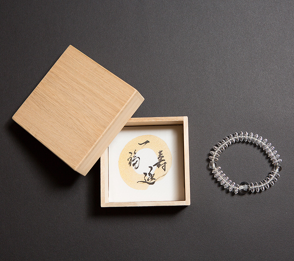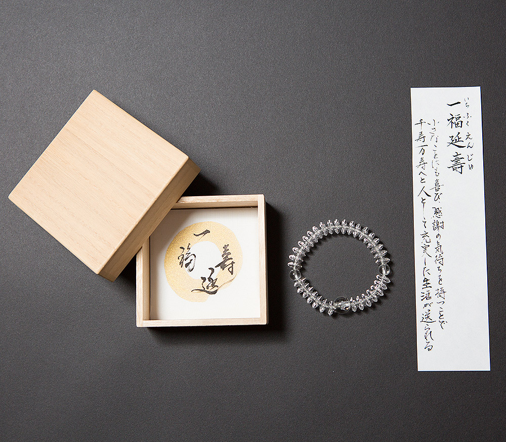 セット内容:ブレスレット + 一福延寿 短冊 + 高級木箱 ずっとお使いいただけるように、高級木箱が付属致します。自分用にはもちろんのこと、ギフトとしても最適です。